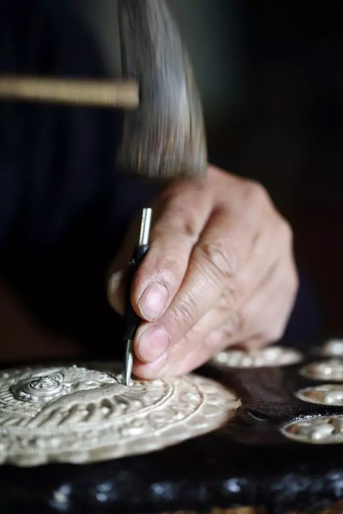 一個圖騰,一份祝福。“苗·傳襲再造”系列少不了經(jīng)典的圖騰,將苗族菱形圖騰進行設(shè)計再造,近看像花,遠觀則更像苗族遷徙的足跡。同時在細節(jié)處采用經(jīng)典苗繡工藝,其中,繡花禮服長裙的腰部刺繡由苗族當?shù)乩C娘手工制作而成,每件禮服手工制作部分需數(shù)日完成,自然而珍貴。