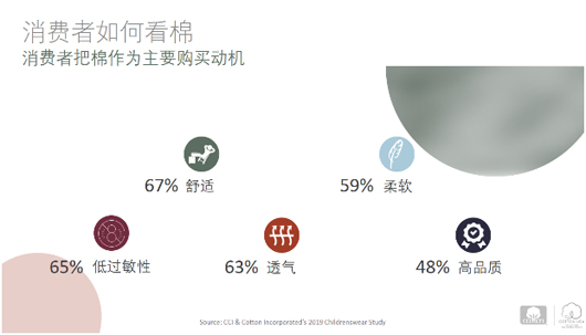 根據歐睿的調查報告,預計從2018年-2023年,中國童裝市場零售額將增至516億美元,比2018年上升63%,是全球最大的童裝市場。在中國,隨著中產階層人口的增加,不斷增長的兒童人均開支,和時尚關注度提高,亞洲童裝市場不斷增長。另一方面,由于可支配收入停滯,出生率降低等原因,西方童裝市場增長緩慢。中國消費者購買童裝時,首要考慮因素是柔軟/舒適,其次是容易穿脫/孩子喜歡,其他因素例如耐穿性價比高也很重要。中國消費者青睞購買全棉或含棉服裝。他們認為棉舒適,柔軟,低過敏性,透氣和高品質。此外,在購買童裝時,孩子對父母也有一定的影響。40%的中國消費者允許孩子給出服裝購買意見。66%的中國父母基本或完全和孩子一起購買服裝。