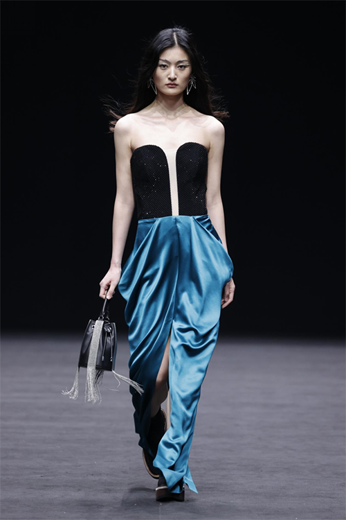 ![]() ![]() 本季,品牌恣意灑脫的態(tài)度,多維呈現(xiàn)身體與服裝結(jié)構(gòu)本身的沖突或舒暢,色彩運(yùn)用中低明度與高飽和純度的對撞呈現(xiàn)層次感,披掛式的結(jié)構(gòu)讓真絲、羊毛、人造纖維等材質(zhì)在身體上展現(xiàn)不一樣的面料屬性。夸張袖子長度、寬度的比例,讓肩部線條更加流暢,看似隨意搭配穿著的禮服,是本季設(shè)計(jì)師的主題“表達(dá)”的另一種呈現(xiàn)方式。