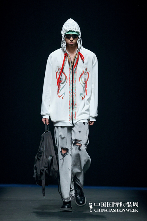 ![]() ![]() ![]() 他對敦煌藝術中的九色鹿、伎樂天、神靈瑞獸等紋樣元素進一步深挖,將之與未來科幻色彩的設計、高新科技材質無縫融合。并運用刺繡、手繪、高清數碼直噴,結合清涼挺括的印染丹寧及提花丹寧面料,表達傳統與現代的碰撞、東方與西方相融合的設計理念,呈現中國“復古未來主義”新風格。