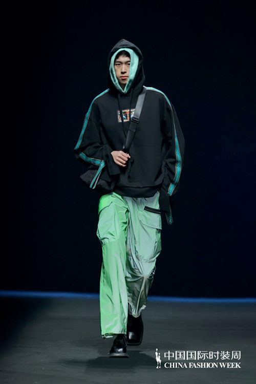 ![]() 黃剛表示,“科技”加于“時尚”,不僅是在對傳統制衣手作工藝的尊重與再造,更多的是設計師對于新興的未來生活方式的興致勃勃。正如大秀開場模特所身著的運用航天級雙向調溫紗線、最新研發的發光衛衣,將敦煌元素和未來主義相結合,運用非遺+科技+時尚的創作思維,在視覺上重現科學與藝術、理性與感性之間的平衡,讓未來主義色彩更鮮亮。