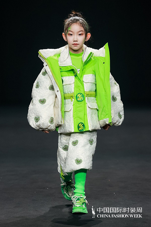 ![]() ![]() 整場發布會服裝以羽絨服為主打產品,設計師以象征夢幻、甜美、希望、溫暖的顏色為主色調,藍、綠、粉、橘等五色混合搭配,大膽運用富有層次的撞色和跳躍活潑的符號元素,組合出孩子們喜歡的時尚單品,在強調安全、舒適的基礎上,向在場觀眾傳遞品牌崇尚自我、歡樂、率性表達的時尚理念,展現出健康、舒適、環保的品牌形象。
