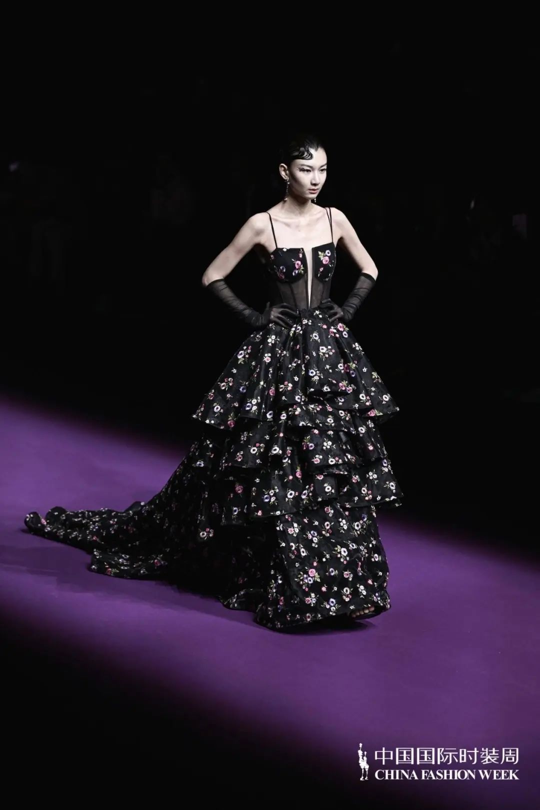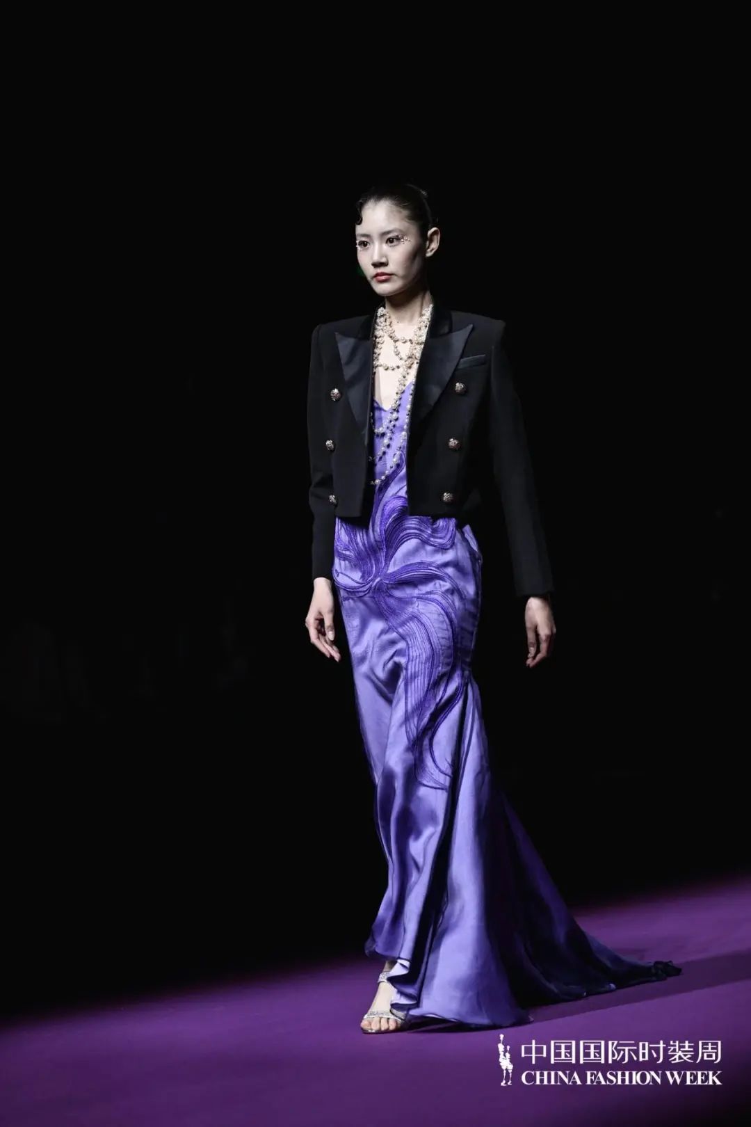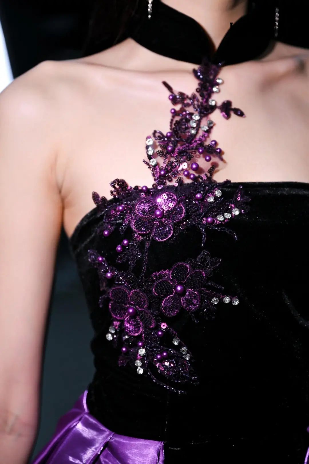 散發(fā)迷人的新浪漫主義氣息「輕奢時尚禮服」系列,以浪漫和優(yōu)雅為設(shè)計(jì)框架,用羽毛,流蘇,寶石、編結(jié),勾勒出精致的細(xì)節(jié)。透明薄紗、絲綢、雪紡等多材質(zhì)隨心拼接;廣繡、潮繡、苗繡、珠繡等獨(dú)特鉤針妙藝如藝術(shù)品般栩栩如生;從絳紫色、玫紅色到黑色層層遞進(jìn),鑲嵌著珍珠、水晶、鉆石,在秀場的燈光中,仿佛回到絢爛的黃金年代,也預(yù)示著擁有不斷重塑自我、重塑時尚精神的LAFAVEUR蕓想如同「浴火鳳凰」,強(qiáng)調(diào)當(dāng)代女性如何在優(yōu)雅與堅(jiān)韌之間找到平衡,展現(xiàn)內(nèi)外兼修的豐盛之美。
