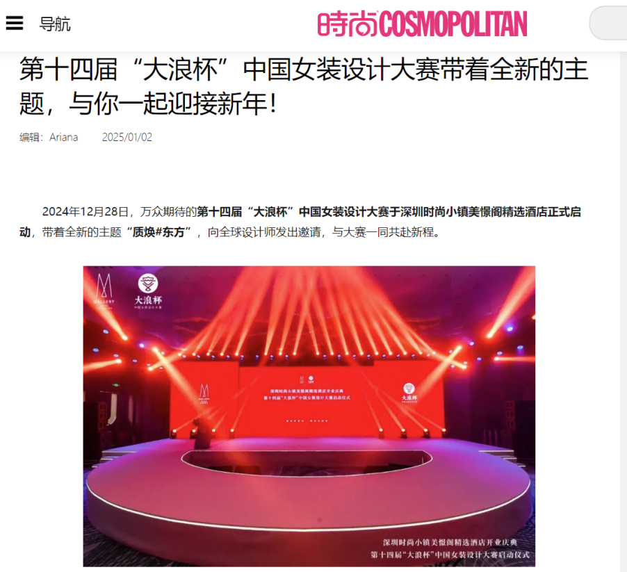 “質煥#東方”第十四屆“大浪杯”中國女裝設計大賽由中國服裝協(xié)會、深圳市龍華區(qū)人民政府主辦,深圳市龍華區(qū)重點區(qū)域建設推進中心、《中國服飾》雜志、深圳市龍華區(qū)大浪街道辦事處承辦,中國紡織出版社有限公司協(xié)辦。