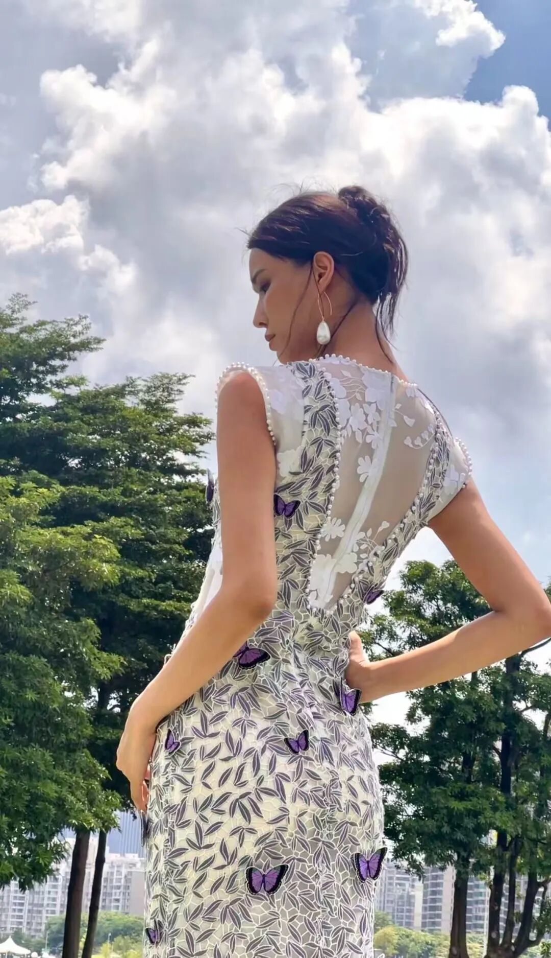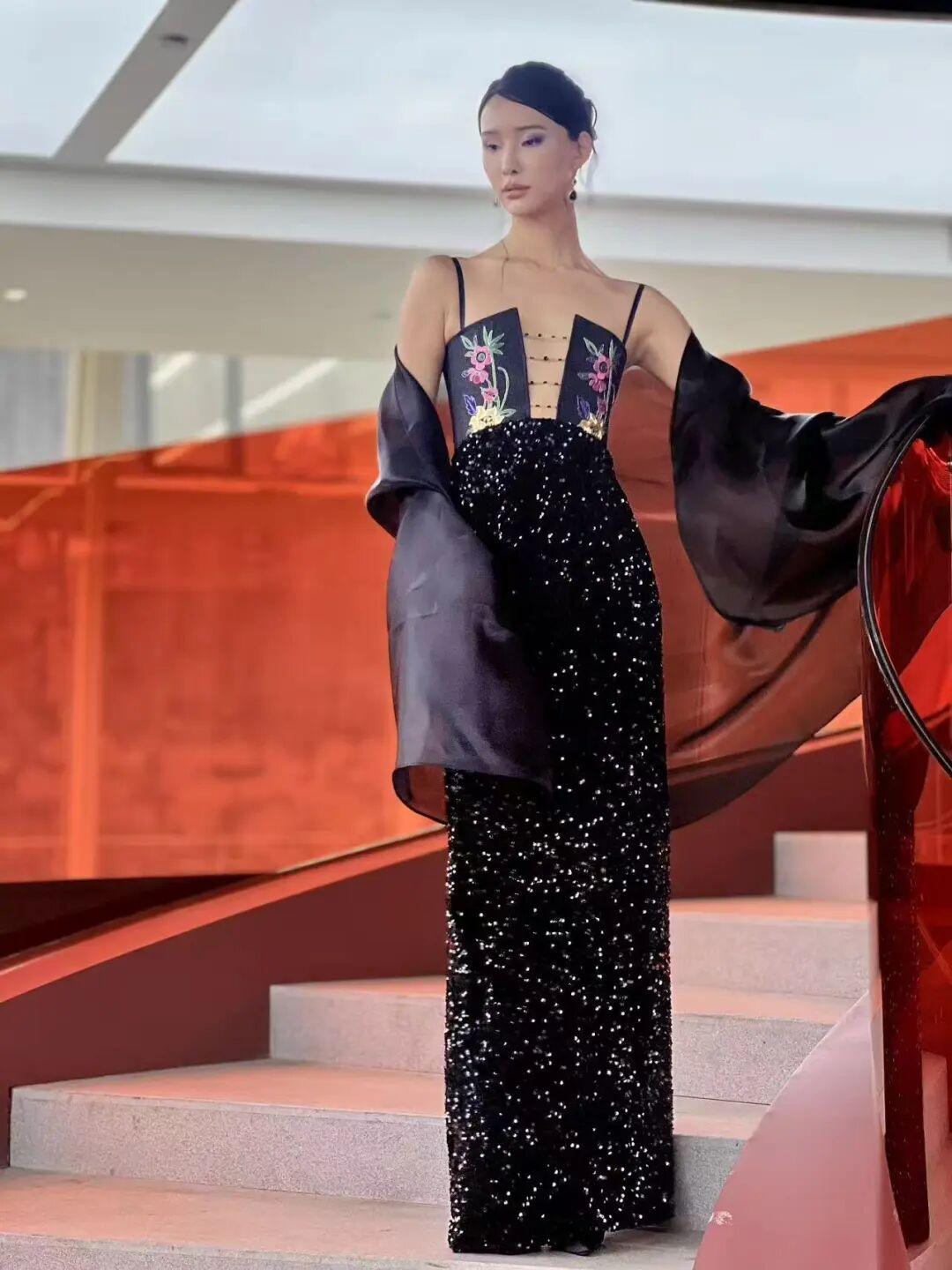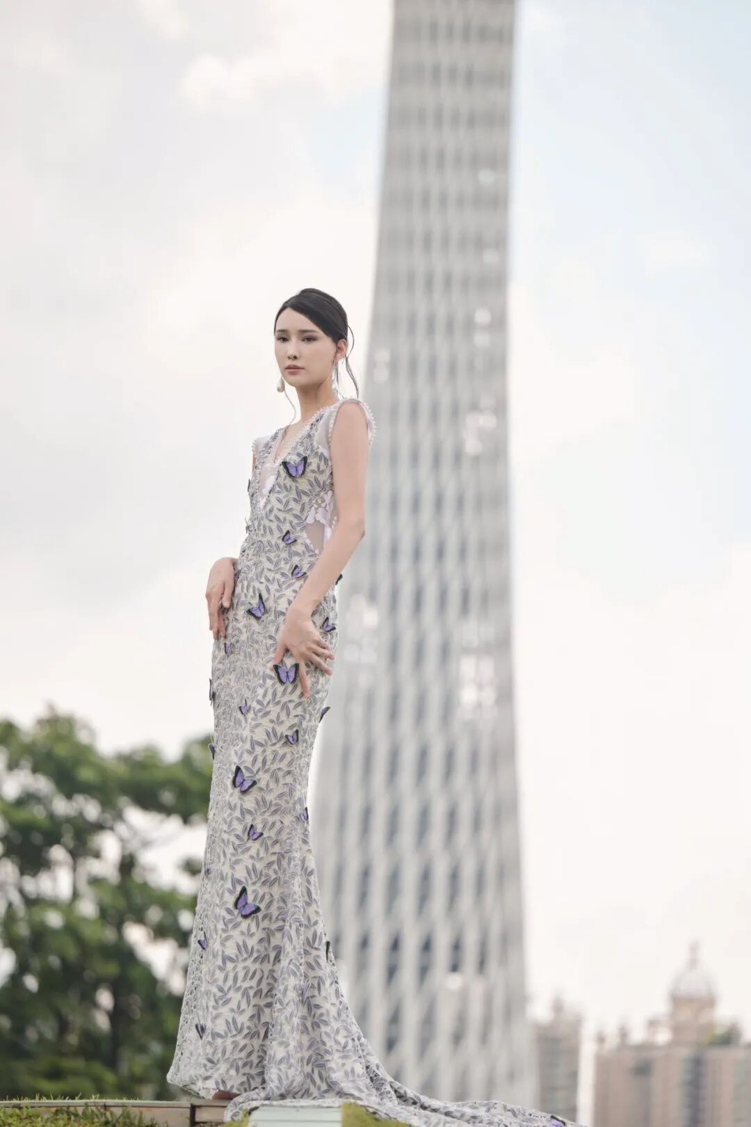 本季發布作品,大量采用真絲、絹紗、歐根緞和品牌自主研發的「繁花」面料等輕盈且有垂墜感的高定面料,融合非遺潮繡、中國傳統珠繡、廣繡與法式鉤針技法,在禮服上繡制玫瑰、玉蘭、牡丹、鳶尾、櫻花等花卉圖案,以及靈雀、蝴蝶等自然生靈。當真絲綃帛綻出潮繡玉蘭,當絹紗褶皺里藏進花信風,「芳菲」從名詞化作動詞,在每一個「她」的步履間,完成一場又一場與美的奔赴。