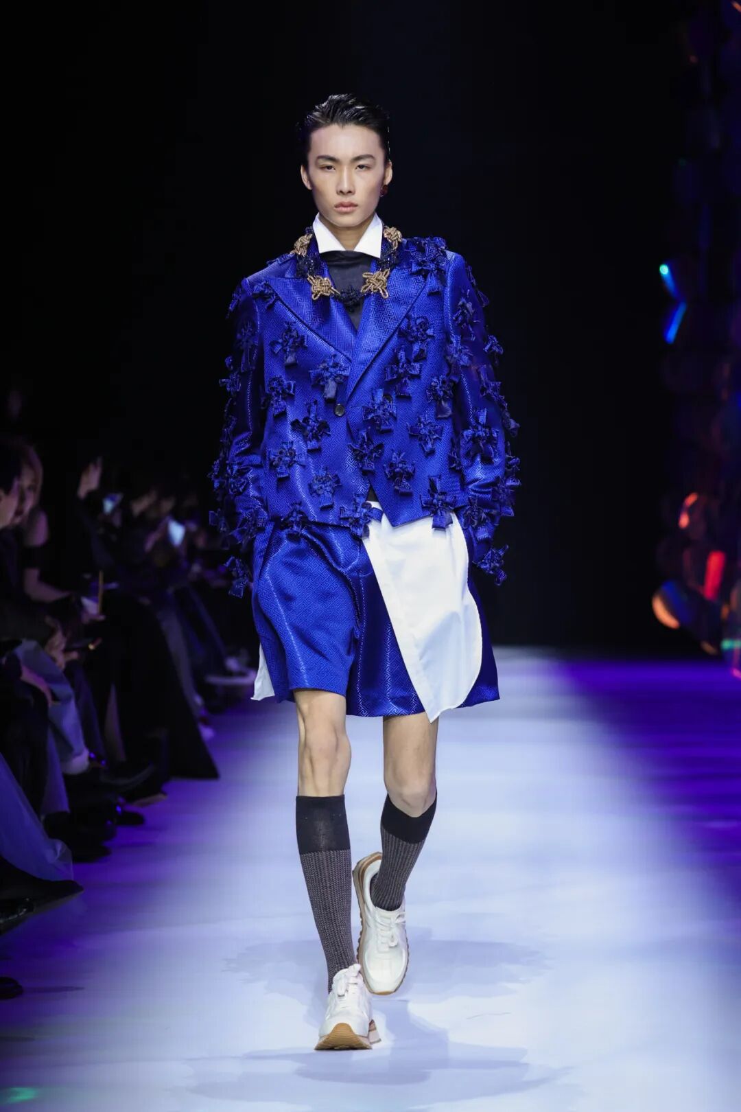 ![]() ![]() ![]() ![]() ![]() ![]() ![]() Beautyberrykids本季依然表現亮眼,品牌經典圖案重新上線,金魚、葫蘆都以更趣味的方式重組童年印象,為大秀開場的范子嬌,重新解構西裝,編織經緯間,為服裝帶來流動性建筑美感,前后蝴蝶結的強調使用,展現本季設計心思。 劉子衿帶著童模走來,前短后長的剪裁童趣十足,而李依儒的壓軸服裝展示了不同于普世觀念中童裝刻意低幼化的肆意灑脫,讓高階審美在不同年齡段形成閉環。