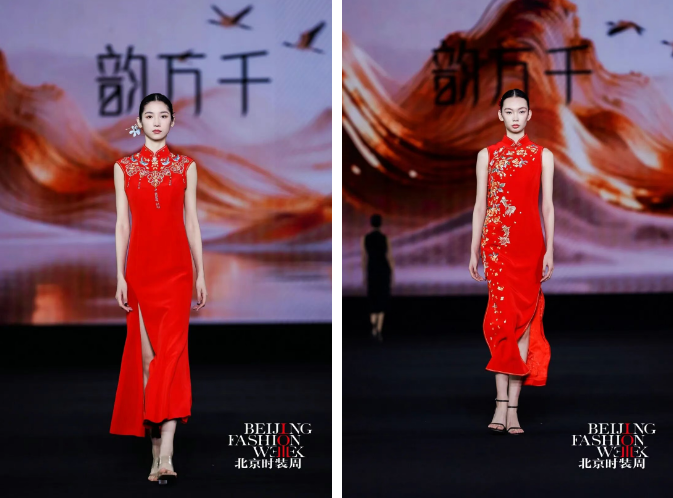 在韻萬(wàn)千的“花神織夢(mèng)”旗袍大秀上,作為湘派旗袍第四代傳人,創(chuàng)始人許紅艷將湘繡蘇繡合璧,鬅毛針繡活祥鹿色彩,虛實(shí)針暈染喜鵲登梅,將吉祥寓意織入衣袂。更值得關(guān)注的是,品牌運(yùn)用AI遠(yuǎn)程量體技術(shù)、7項(xiàng)軟件著作權(quán)賦能的定制體系,讓非遺從“手工作坊”走向可復(fù)制的個(gè)性化定制。從一人一版到遠(yuǎn)銷27國(guó),韻萬(wàn)千證明了非遺可以既是“可穿的藝術(shù)”,也是“全球的生意”。