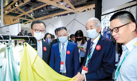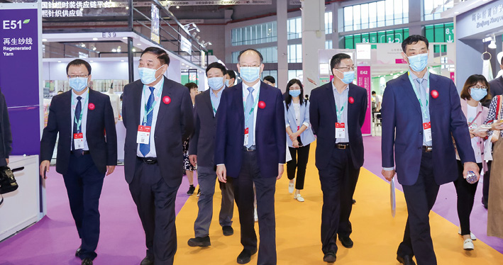 中國紡聯秋季聯展凝聚行業創新力量 本刊記者-劉嘉 鄔瑩穎 董笑妍 王利 徐長杰 金秋已至,盛會重啟。9月23—25日,中國紡織工業聯合會秋季聯展——2020中國國際紡織面料及輔料(秋冬)博覽會、中國國際服裝服飾博覽會2020(秋季)、2020中國國際紡織紗線(秋冬)展覽會、2020中國國際針織(秋冬)博覽會四大專業展會于國家會展中心(上海)盛大舉行。 強勢回歸的四大專業展會在三天時間里,以30萬平方米的展示面積、4500家展商的強大陣容,同期同地,同頻共振。行業人再度搭載“聯合艦隊”,共襄盛舉,破冰前行。開幕首日,中國紡織工業聯合會黨委書記兼秘書長高勇,會長孫瑞哲,原會長杜鈺洲、王天凱,原副會長許坤元,黨委副書記陳偉康,副會長徐迎新、陳大鵬、李陵申、楊兆華,原副會長楊東輝、張延愷、楊紀朝等領導與嘉賓參觀了本屆聯展。 把失去的時間搶回來,把失去的損失補回來!在疫情對行業企業造成損失的同時,也倒逼很多企業應變求變,爭分奪秒,加快轉型升級。在此次聯展上,行業企業精銳出擊,呈現科技成果、時尚新品和引領未來的責任發展理念;商貿對接熱力升級,線上線下精準互動,百余場活動精彩紛呈。