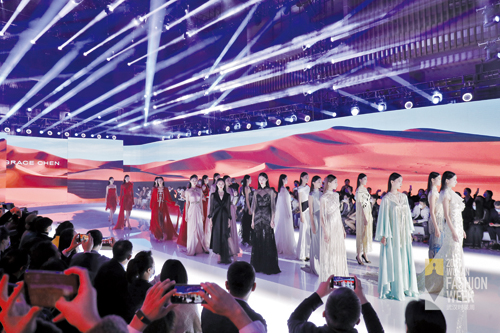2020武漢時裝周精彩上演 本刊記者-張尚南 11月7-10日,2020武漢時裝周在武漢紅T時尚創意街區精彩上演,中國紡織工業聯合會副會長、中國服裝協會會長陳大鵬,湖北省委常委、武漢市委書記王忠林,武漢市委副書記、市長周先旺出席活動。 武漢時裝周創辦于2012年,目前已逐步成為武漢拉動時尚產業發展、宣傳城市形象的功能性平臺。本屆時裝周的開幕秀邀請了5位中國時裝設計最高獎“金頂獎”設計師共同打造了“志愿紅”主題聯合秀,閉幕秀則由兩屆“金頂獎”得主劉勇帶來了“嗨·色 嗨·武漢”主題大秀。此外,武漢時尚女裝品牌紅人、國際高定品牌Grace Chen、ELLASSAY歌力思等也相繼發布了新品,為期4天的時裝周共帶來了20場時尚大秀。與此同時,還頒發了十佳模特大獎、風尚設計大獎、時尚品牌大獎和時尚產業推動大獎等獎項。