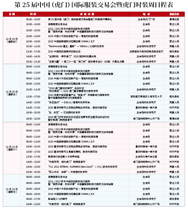 突出“五新”,增強產業內生動力 據展會主辦方負責人介紹,本屆服交會突出五新,即:展會的新模式、虎門的新活力、產業的新風貌、行業的新趨勢、經濟的新動力。 展會的新模式。后疫情時代和數字經濟時代,新渠道和新營銷模式成為企業高質量發展的迫切需求。為此,本屆服交會將實現線上線下聯動辦展,首次開啟線上云展會,以直播、VR、5G等技術,以圖文、視頻多維度展示展商和展品信息,讓無法到場的采購商與展商無縫對接,實現展商云展示、采購商云逛展。 同時,服交會期間豐富多彩的時尚發布、設計賽事、專業論壇、對接會、交易會等線下活動,也將通過直播手段實現線上線下同步。組委會邀請的專業直播團隊還將以走展的形式,縱覽各展位的各種細節,將時尚趨勢與流行元素零距離呈現于觀眾眼前。 虎門的新活力。當前,虎門正牢牢把握粵港澳大灣區建設、深圳建設中國特色社會主義先行示范區、東莞建設廣東省制造業供給側結構性改革創新實驗區“三區”疊加的重大戰略機遇,堅持以東莞濱海灣新區的發展為牽引和推動,積極拓展產業發展空間,大力提升城市品質,加快新舊動能轉換,致力推動更高水平的開放、更高質量的發展。 同時,虎門服裝產業集群龐大、產業鏈條完善、市場體系成熟,吸引了越來越多的知名企業落戶虎門或參展服交會,例如法國人Claudine Bertinotti創立的現心制衣公司、歐詩雨服飾、浙江菲茉茜品牌管理公司、深圳詩曼芬公司、廣州潮流薈供應鏈管理公司……他們十分期待在本屆服交會期間尋得合作機遇。 產業的新風貌。經歷疫情的洗禮,虎門服裝產業仍然保持良好勢頭,一方面是因為產業實力雄厚、根基穩固,另一方面則是由于企業自身實力強勁,適時調整經營策略,抗風險能力強。作為產業發展的縮影,本屆服交會期間,虎門服裝產業的風貌也將得到良好展現。 行業的新趨勢。本屆服交會仍然是潮流趨勢的大看臺,虎門實力品牌以純、富民、歐點、意澳、木棉道、艾加茜等9場時裝表演,將傾力展示虎門服裝的原創設計實力。此外,“全球時尚·牽手虎門”2020國際時尚擂臺秀將引爆本屆服交會,來自法國巴黎的NeithNyer、美國紐約的Angelann、英國倫敦的JEFF BANKS、意大利米蘭的 Alberto Zambelli和中國的Alicia Lee 五大全球著名設計師品牌將進行時尚巔峰對決。此外,時尚賽事、趨勢發布等異彩紛呈的各類活動,將共同剖析當今行業趨勢,破解時尚密碼。 經濟的新動力。后疫情時代,對于國內市場拓展,國家已經提出了構建“以國內大循環為主體、國內國際雙循環相互促進的新發展格局”。虎門將積極融入“國內國際雙循環”,以第25屆服交會為構建“雙循環”格局的重要窗口,為虎門經濟社會的發展注入新的動力。