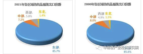 雖然中西部地區紡織品服裝出口占比較小,但全年有三省市增速超過100%。其中,四川、寧夏、青海2021年紡織品服裝出口增長分別達到110.4%、386.0%和148.2%。 |