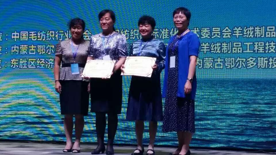 中國紡織工業聯合會副秘書長、科技部主任彭燕麗,中國毛紡織行業協會會長黃淑媛頒發山羊絨專業委員會主任及常務副主任聘書