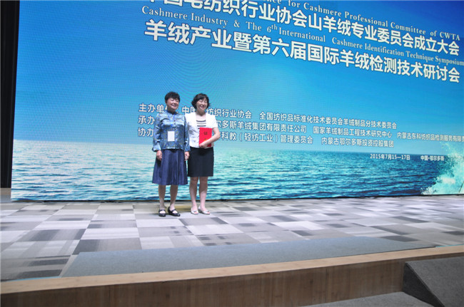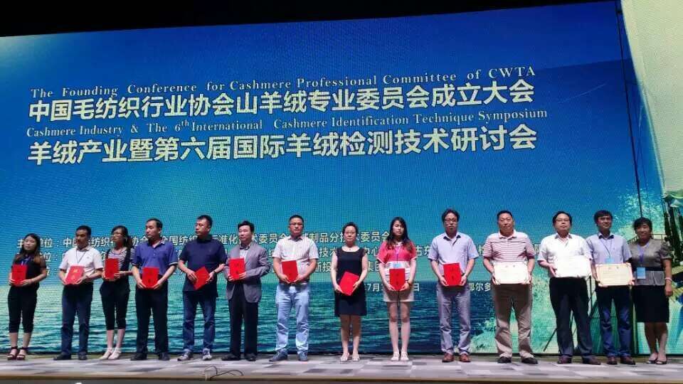 7月15日,由中國毛紡織行業協會、全國紡織品標準化技術委員會羊絨制品分技術委員會主辦,內蒙古鄂爾多斯集團有限責任公司、國家羊絨制品工程技術研究中心、內蒙古東科紡織品檢測服務有限責任公司承辦的中國毛紡織行業協會山羊絨專業委員會成立大會暨第六屆國際羊絨檢測技術研討會在鄂爾多斯舉行。