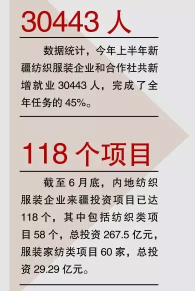 更為振奮人心的是,今年5 月14 日,中共中央政治局委員、新疆維吾爾自治區(qū)黨委書記張春賢主持召開了自治區(qū)第32 次黨委常委(擴大)會議,專題研究紡織服裝產(chǎn)業(yè)帶動就業(yè)工作,張春賢書記提出要抓好六個關(guān)鍵點,即抓好現(xiàn)有企業(yè)、招商、培訓(xùn)、印染工藝、兵團紡織服裝產(chǎn)業(yè)發(fā)展和市場環(huán)境。 今年以來,新疆紡織服裝產(chǎn)業(yè)在中央和自治區(qū)大力支持扶持下,吸引了一大批國內(nèi)外紡織服裝加工企業(yè)到新疆投資,依靠先進的紡織服裝產(chǎn)業(yè)技術(shù)、管理和營銷等方面的優(yōu)勢,與新疆本地的區(qū)域優(yōu)勢、民族文化優(yōu)勢有機地結(jié)合。同時,推動和引導(dǎo)著沿海地區(qū)具有產(chǎn)業(yè)鏈優(yōu)勢和國內(nèi)外銷售渠道的大集團和大企業(yè),把產(chǎn)業(yè)鏈的終端向新疆轉(zhuǎn)移,建立出口加工基地,切實加快新疆紡織服裝產(chǎn)業(yè)發(fā)展,真正解決百萬人就業(yè)。