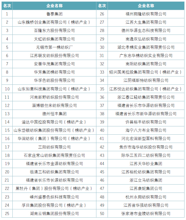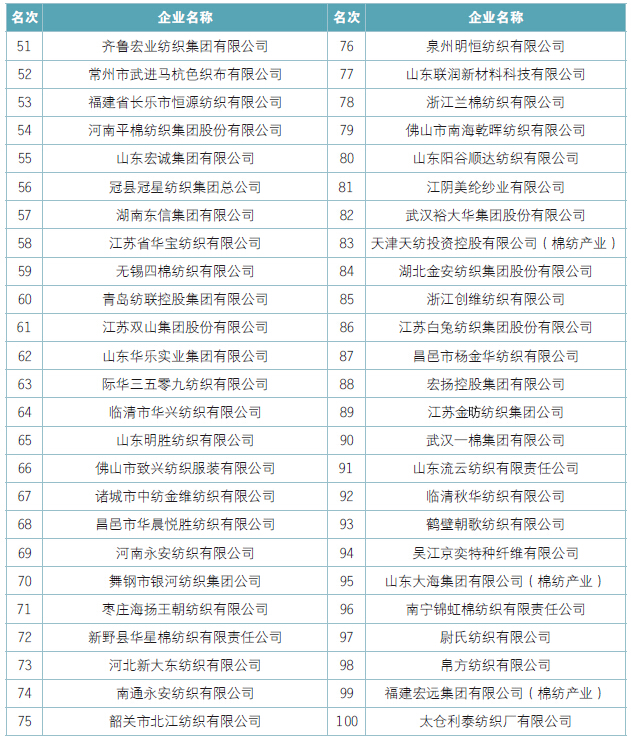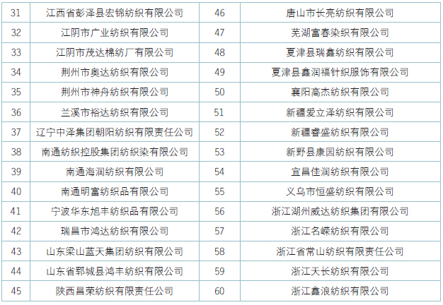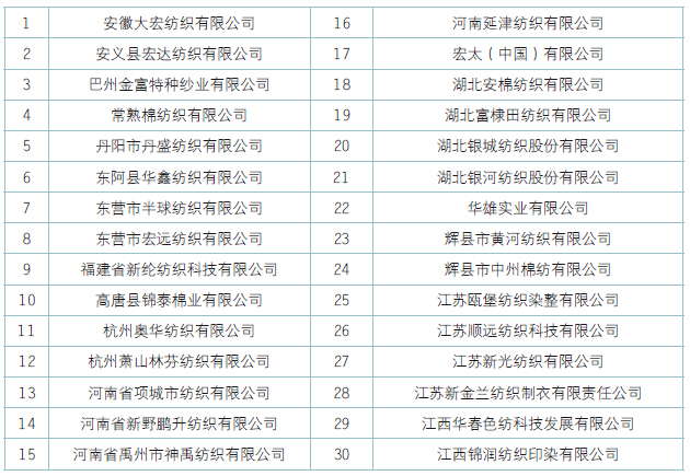 “2014/2015年度棉紡織行業競爭力百強企業”獲獎名單