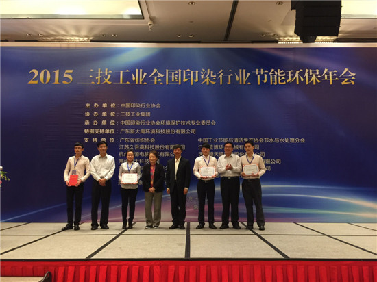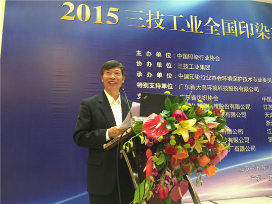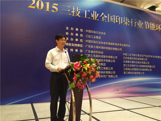 本刊記者—牛嬋 11月4日,“2015三技工業全國印染行業節能環保年會”在廣東省佛山市舉行,對“十二五”以來紡織印染行業節能環保形勢及“十三五”國家環保管理政策進行研討,并交流節能環保經驗推廣節能環保新技術和新工藝。 中國工程院院士周翔,國家環境保護部科技標準司副巡視員胥樹凡,中國印染行業協會名譽會長李金寶、會長陳志華,工業和信息化部消費品司紡織處縱瑞龍,國家環境保護部總量司史姝瓊,廣東省紡織協會秘書長陳茜薇等領導專家,及青島鳳凰印染、盛虹集團、浙江三元紡織、三技工業等企業高層300余人出席會議。 陳志華在致辭中表示,從2006年開始,環保年會已經連續召開了九屆,今年是第十屆。十年來,節能環保年會與企業共同成長。每年的環保年會針對行業普遍關注的熱點、難點問題,就行業亟需突破的一些共性、關鍵節能減排技術進行交流,為行業不斷提高節能減排水平、更好的保護環境起到了良好的推動作用。