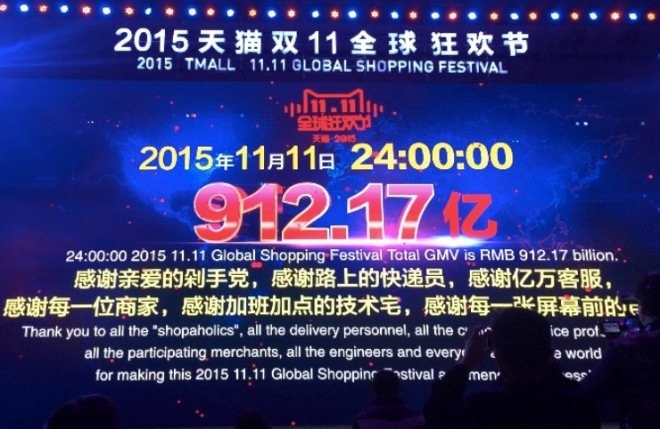 2015天貓雙十一全球狂歡節開始的第18秒,交易額超1億元; 1分12秒,交易額超10億元; 12分28秒,交易額100億元; 33分53秒,交易額超200億; 1小時13分59秒,交易額超300億; 4小時26分31秒,交易額超362億元,已超過2013年雙十一全天交易額; 7小時45分42秒,交易額超417億,已超過2014年美國感恩節購物節線上交易總額; 9小時52分22秒,交易額超500億; 11小時50分,交易額超571億,大破2014年雙十一全天交易額記錄; 北京時間12時,交易額達576億; 17時28分,交易額超719億,超2014年全國社會消費品單日零售額; 21時35秒,交易額超800億; 24時,交易額超912億。
