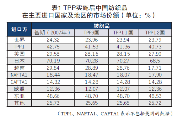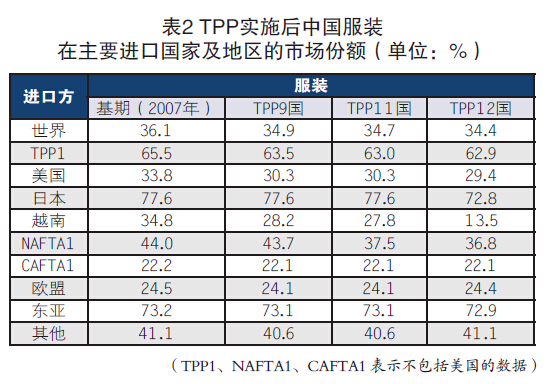 不能否認(rèn),習(xí)慣于制定國際規(guī)則和世界秩序的人,在MFA這么一個不公平的規(guī)則解除之后,仍想著重新掌握全球貿(mào)易的話語權(quán)與控制權(quán),他們也確實(shí)具有這方面的能力。經(jīng)濟(jì)專業(yè)人士陸圣2013年在分析TPP進(jìn)程階段中的紡織服裝的市場占有率的變化時,發(fā)現(xiàn)中國的紡織服裝在相關(guān)市場占有率出現(xiàn)下降(表1、表2),可以預(yù)期,當(dāng)TPP12國協(xié)議正式付諸實(shí)施,紡織貿(mào)易轉(zhuǎn)移效應(yīng)會進(jìn)一步顯現(xiàn),這需要中國的紡織界特別是學(xué)術(shù)界認(rèn)真分析并拭目以待。 平心而論,TPP秉承的是提高貿(mào)易標(biāo)準(zhǔn)的思想,符合世界紡織服裝貿(mào)易可持續(xù)增長的條件和發(fā)展趨勢,如清潔生產(chǎn)、技術(shù)性貿(mào)易條件、知識產(chǎn)權(quán)保護(hù)、企業(yè)社會責(zé)任等;TPP的“力爭上游”思想更是否定“追底殺低”的法則,有利于世界紡織產(chǎn)業(yè)健康永續(xù)發(fā)展。而這些正是我國紡織業(yè)的軟肋,從這個意義上看,TPP將倒逼中國紡織升級。