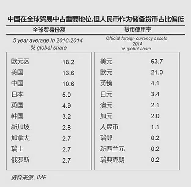 目前,四種SDR貨幣的占比分別為美元41.9%,歐元37.4%,英鎊11.3%,日元9.4%,占比更大的貨幣在世界經(jīng)濟中的影響力更高。 人民幣“入籃”后,你最關心的那點事兒 人民幣貶值? 近期,離岸人民幣一度連續(xù)出現(xiàn)貶值,使得匯率走勢再度引發(fā)各界關注。多方機構(gòu)觀點認為,人民幣進入SDR后不會出現(xiàn)急劇貶值,但中短期內(nèi)受到美聯(lián)儲加息的影響,人民幣對美元可能會適度走弱,但總體可控。 但從外匯市場來說,雖然納入SDR對人民幣來說是一個非常重大的利好,但目前市場還要面對美聯(lián)儲加息等問題,人民幣不太可能因為被納入SDR而出現(xiàn)逆周期走勢。