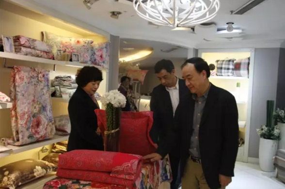 中國紡織工業聯合會副會長夏令敏(左二)、江蘇省紡織工業協會會長謝明(左三)一行在聽取波司登董事局主席高德康介紹企業發展情況。 調研組一行還前往昆承湖紡織服裝電商產業園中服園區、虞山鎮莫城電商園、阿仕頓服飾、波司登集團走訪調研,切實了解各企業的運行情況,并提出相關建議。 在江蘇近些年快速成長為全國知名快時尚男裝品牌的阿仕頓總部,夏令敏向阿仕頓董事長龔政表示,電商和設計是服裝品牌企業要去重點考慮的,特別是抓住市場的設計,才能讓品牌有突出發展的機會。他在形象店中看到阿仕頓的品牌定價,認為這種價格策略是目前中國大眾消費群體所能接受的。走這樣物美價廉的路子,也是中國當下品牌快速發展的先機。 3月3日,調研組又來到盛澤展開調研,走訪了盛虹集團、京奕集團、中國綢都網、宜布網等企業,深入了解了中國東方絲綢市場和盛澤紡織企業落實“互聯網+”、兩化融合方面的基本情況和總體發展水平。