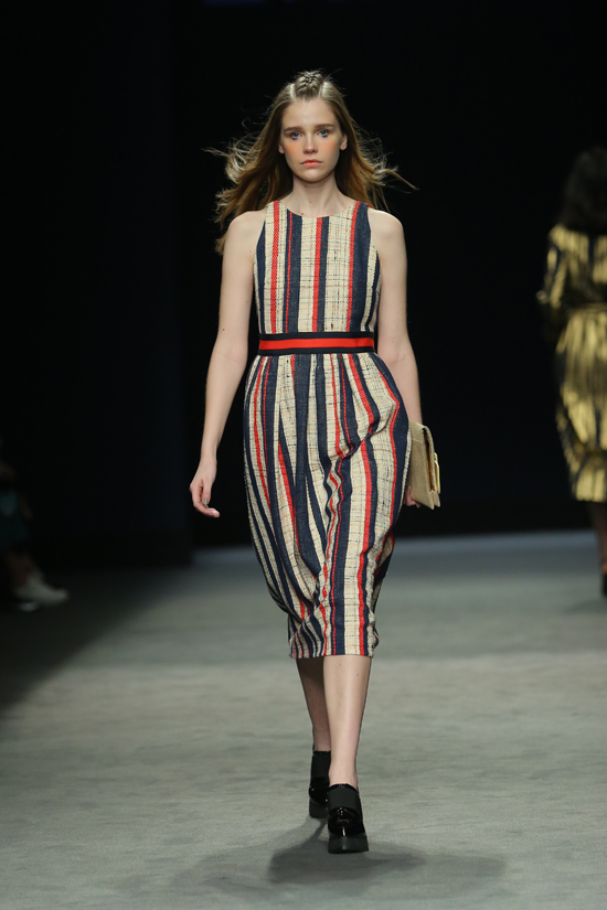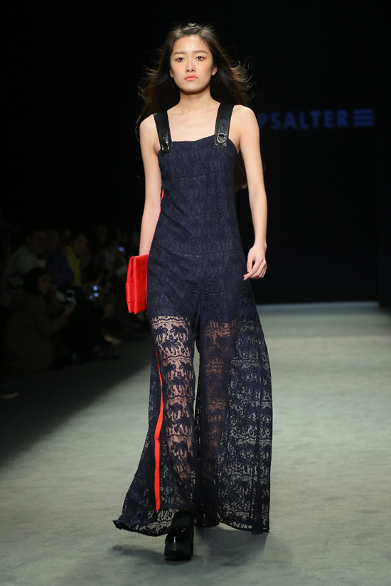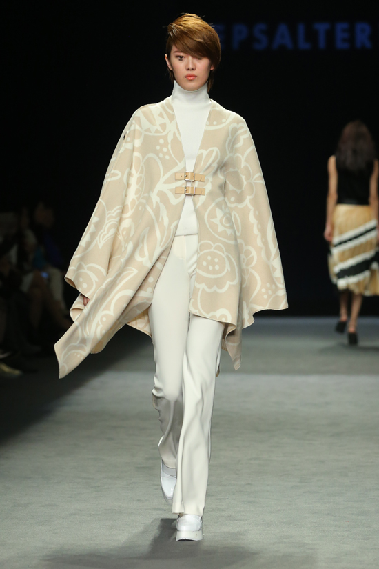 在YINER大秀之后,影兒時尚集團旗下的PSALTER詩篇品牌發布如期上演,帶著新學院貴族風范,獨立、干練、滿腹書卷氣息,詩篇女郎從T臺中緩緩走來,為現場觀眾翻開了一本巧心繪制的新學院時尚扎記。這場秀的主題為“榮耀的盼望”,分為“新都市、新關系、新存在”三個序章,整場秀的作品傳遞的是“新學院潮流”風格。