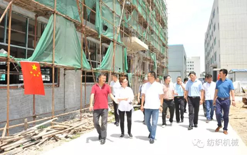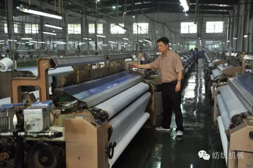 (參觀企業五)浙江常鑫紡織品有限公司。常鑫紡織新廠房馬上就要竣工,屆時其將擁有700臺噴水織機開足馬力生產,計劃到明年將增加到1000臺。