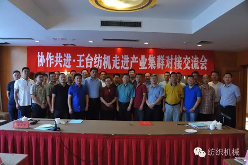 7月20日,夾浦的關鍵詞是“熱”。 上午夾浦最高氣溫達37度,王臺鎮黨委書記韓延春親自帶隊,同海佳、鎧碩、星火、百佳、華信、日佳等王臺六家龍頭織造設備制造企業代表近20人奔走在夾浦各大優秀織布廠;下午對接現場,夾浦、王臺雙方企業代表熱烈討論,一分鐘未停持續了3個多小時。溝通中,很多夾浦代表都在感慨:你們要是早點來就好了! 紡織產業集群的健康、可持續發展,歷來備受各級政府和行業的高度重視。產業集群發展到今天,單打獨斗已然不能適應當前的發展。作為“中國紡織機械名鎮”黃島區王臺鎮與作為“中國長絲織造名鎮”的長興縣夾浦鎮在紡織產業發展上具有很強的互補性和協作性。