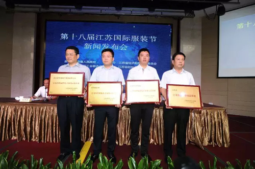王志忠在新聞發布會上指出:紡織服裝行業是江蘇國民經濟傳統支柱產業和重要民生產業,也是國際競爭優勢明顯的產業。江蘇省紡織服裝產業無論是數量還是層次上均居全國前列。規模總量全國領先,利潤總額全國最高,外貿出口總體平穩,產業集群實力雄厚。今年上半年,江蘇紡織服裝行業實現主營業務收入7148.84億元,同比增長5.16%;全行業實現利潤總額370.7億元,同比增長8.38%,繼續保持了健康穩定的態勢。 他表示,江蘇國際服裝節是江蘇省政府重點打造的會展品牌之一,是專門為江蘇省內外紡織服裝行業打造的交流、展示和服務的平臺。今年,服裝節已經走進第十八個年頭了。十八年來,江蘇國際服裝節緊扣當前行業發展形勢,年年有亮點、屆屆有創新,在推動行業發展、加快自主品牌和集群品牌建設、提升江蘇時尚地位、擴大區域影響力等方面作出了突出貢獻。 產業集群再添喜 平望鎮、鹽城市等獲授牌表彰 在行業盛事江蘇國際服裝節即將舉辦之際,江蘇紡織服裝產業集群再添喜。在此次新聞發布會期間,舉行了產業集群試點單位的授牌儀式。