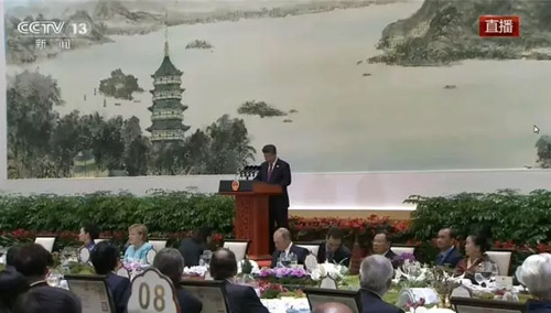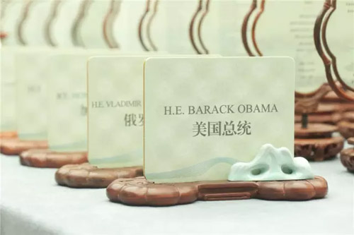 G20峰會歡迎晚宴上的絲綢桌號牌。 G20杭州峰會揭開了中國與世界交流合作的新篇。同一時刻,絲綢這一中國歷史經(jīng)典元素也開啟了又一段新旅程。 9月4日晚,杭州西湖國賓館,“東道主”中國為與會的各國領(lǐng)導人舉行了最高規(guī)格的晚宴。在這場代表國家體面的國宴中,中國將傳統(tǒng)禮儀文化演繹得淋漓盡致,其中就有萬事利絲綢的完美表達。