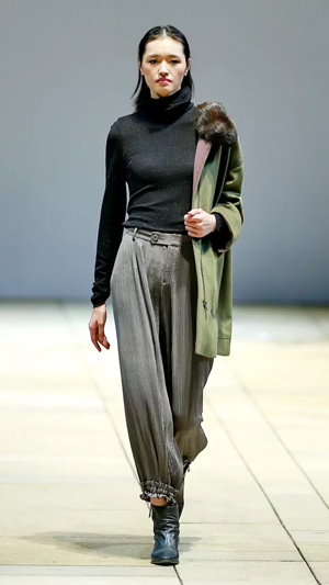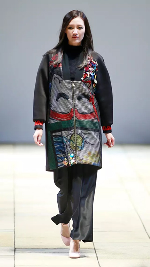 王玉濤此次帶來的是B+ by Beautyberry的2016秋冬系列,共展出了約40套男女裝成衣作品。從設計上看,本次發布的設計新品在設計理念上延續了王玉濤對京都文化的追索,讓靈感超脫至身體甚至思緒之外,跟隨靜謐而肅穆的城市氣質體驗一個又一個碰撞。 寺廟的方外感天然地賦予其神秘韻味,不期而遇的貓咪更是蒙上不可說的神秘色彩,對設計師凝結靈感有莫大的催化。跳脫到衣服對身心的束縛之外,王玉濤希望用新一季的設計去探尋內心的安定,用設計取代女性對安全感的追求。