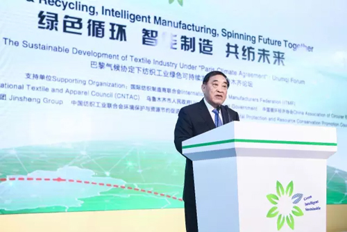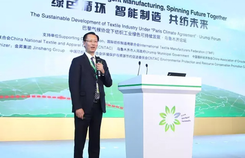 本刊記者-袁春妹 2016年9月18日,在第五屆中國——亞歐博覽會召開前夕,由國際紡織制造商聯(lián)合會支持,中國紡織工業(yè)聯(lián)合會、烏魯木齊市人民政府、中國循環(huán)經(jīng)濟(jì)協(xié)會主辦,金昇集團(tuán)、中國紡織工業(yè)聯(lián)合會環(huán)境保護(hù)與資源節(jié)約促進(jìn)委員會承辦的,以“綠色循環(huán) 智能制造 共紡未來”為的主題的首屆“巴黎氣候協(xié)定下紡織工業(yè)綠色可持續(xù)發(fā)展·烏魯木齊論壇”在新疆烏魯木齊隆重舉行。 中國紡織工業(yè)聯(lián)合會會長王天凱、新疆維吾爾自治區(qū)常務(wù)副主席黃衛(wèi)、中國紡織工業(yè)聯(lián)合會副會長孫瑞哲,新疆維吾爾自治區(qū)人民政府副秘書長梁勇、新疆維吾爾自治區(qū)烏魯木齊市委書記李學(xué)軍、全國人民代表大會環(huán)境與資源保護(hù)委員會委員蒲長城、中國循環(huán)經(jīng)濟(jì)協(xié)會副會長趙凱、金昇集團(tuán)董事長潘雪平等國家相關(guān)部委領(lǐng)導(dǎo)及企業(yè)家代表出席論壇,并做主旨發(fā)言。 論壇就“綠色循環(huán)”以及“智能制造”兩大熱點(diǎn)議題展開交流,來自韓國纖維產(chǎn)業(yè)聯(lián)合會、德國機(jī)械設(shè)備制造業(yè)聯(lián)合會、良好棉花發(fā)展協(xié)會、澳大利亞未來纖維研究創(chuàng)新中心、東華大學(xué)等國內(nèi)外相關(guān)協(xié)會組織、科研機(jī)構(gòu)負(fù)責(zé)人以及來自卓郎集團(tuán)、溢達(dá)特紡、卡爾邁耶、德樂針織、H&M等國際知名企業(yè)高管參與了交流、對話,同來自國內(nèi)外400余位業(yè)界同仁分享經(jīng)驗(yàn)與感悟。 產(chǎn)業(yè) 環(huán)保發(fā)展 大勢所趨 王天凱在會上分析了巴黎氣候協(xié)定的背景和意義,并指出:中國紡織工業(yè)作為國民經(jīng)濟(jì)的傳統(tǒng)支柱產(chǎn)業(yè)、重要的民生產(chǎn)業(yè)和創(chuàng)造國際競爭新優(yōu)勢的產(chǎn)業(yè),要適應(yīng)巴黎協(xié)定,加快綠色可持續(xù)發(fā)展的趨勢和要求,沿著紡織工業(yè)“十三五”規(guī)劃中加強(qiáng)綠色織造基礎(chǔ)管理、推廣先進(jìn)綠色織造技術(shù)、以及構(gòu)建綠制造體系的具體路線圖,盡快走出一條低碳、綠色和循環(huán)發(fā)展的轉(zhuǎn)型升級之路。