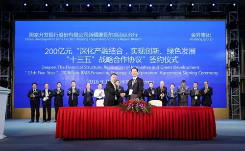 論壇當(dāng)日,金昇集團(tuán)和國家開發(fā)銀行股份有限公司新疆維吾爾自治區(qū)分行簽署了200億開發(fā)性金融合作協(xié)議。根據(jù)協(xié)議,雙方將充分發(fā)揮金昇集團(tuán)的產(chǎn)業(yè)優(yōu)勢和國家開發(fā)銀行投融資優(yōu)勢,深化產(chǎn)融結(jié)合,實(shí)現(xiàn)創(chuàng)新、綠色發(fā)展的“十三五”戰(zhàn)略。 9月19日,與會嘉賓還前往庫爾勒經(jīng)濟(jì)開發(fā)區(qū)參觀金昇旗下的利泰庫爾勒綠色生態(tài)紗線示范園。利泰紡織擁有111年歷史,是目前全國僅存的兩家百年紡紗企業(yè)之一,也是目前國內(nèi)最大的針織服裝企業(yè)主要供應(yīng)商。目前,庫爾勒108萬錠紡織項(xiàng)目已實(shí)現(xiàn)運(yùn)營投產(chǎn)。利泰庫爾勒綠色生態(tài)紗線示范園是全球最大的紡紗工廠之一,配備了全球領(lǐng)先的紡織機(jī)械,通過高速、高度自動化和低能耗真正實(shí)現(xiàn)智能制造。 |