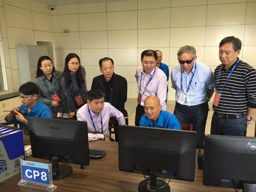 考察團在聚酯中控現場。