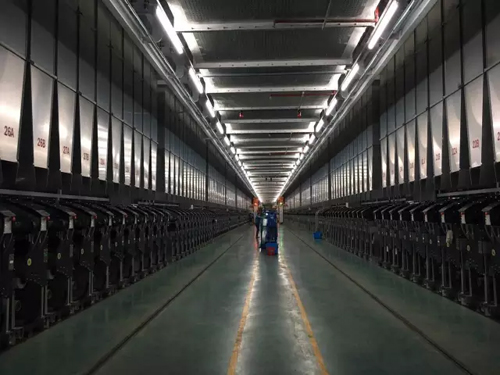 生產現場,先進設備。 新鳳鳴集團創新變革帶來的變化,在企業生產一線體現得淋漓盡致。走進新鳳鳴集團生產車間,偌大的車間里,沒有了往日里工人來回搬運化纖絲餅的繁忙景象,整條生產線的用工,大部分已被機器操作代替。“用機器代替人工,這既是大勢所趨,更是市場需求最真切的反映。”趙春財說。2009年開始,新鳳鳴集團“機器換人”的步伐越走越快,經過多年的發展,企業效率、效益得到了明顯提增;2011年,企業年產量近100萬噸,員工5800人;到2015年,在企業產量增加了120%的情況下,員工總量僅僅只增加29%。