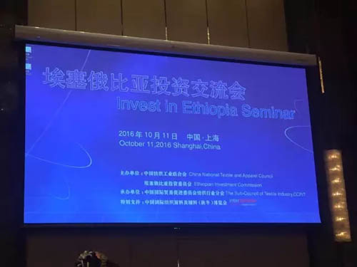 10月11日,intertextile秋冬面輔料展首日,由中國紡織工業聯合會和埃塞俄比亞政府共同主辦、中國國際貿易促進委員會紡織行業分會承辦的埃塞俄比亞投資推介會在國家會展中心(上海)隆重召開。