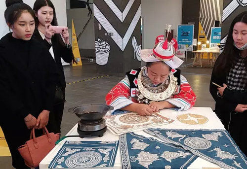 10月15~18日,傳統印染技藝研修班靜態展在北服藝術樓銀色大廳展出,以“見染·拾遺”為主題,分為展覽區和體驗區。展覽區分別陳列著20位非遺學員的作品,看古老技藝煥發出新的活力;體驗區展示印染所用的工具以及印染過程,觀眾可以通過與非遺學員互動交流,體驗非遺制作的樂趣。