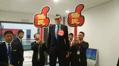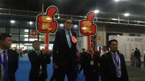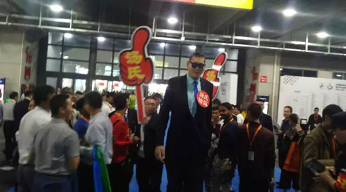 對(duì),這就是H2湯氏紡機(jī)展臺(tái):湯公子給整個(gè)展會(huì)準(zhǔn)備的第一個(gè)節(jié)目——22日上午,國(guó)際巨星姚明戰(zhàn)友、亞洲第一巨人張歡將助陣湯氏展臺(tái),2米38的身高告訴你什么叫什么叫真正的仰慕。一亮相便引爆全場(chǎng)!