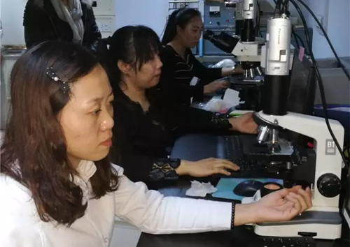 中國畜產(chǎn)品流通協(xié)會(huì)常務(wù)副會(huì)長倪靜(左后一)在視察比武現(xiàn)場。 倪靜指出,本次培訓(xùn)比武活動(dòng)旨在提高羊絨行業(yè)的生產(chǎn)技術(shù)及檢驗(yàn)檢測水平,強(qiáng)化行業(yè)管理,促進(jìn)羊絨產(chǎn)業(yè)轉(zhuǎn)型升級,實(shí)施羊絨行業(yè)的“三品”的戰(zhàn)略,營造良好的市場環(huán)境。 在培訓(xùn)中,中國纖維檢驗(yàn)局標(biāo)準(zhǔn)科技處處長杜樹瑩重點(diǎn)解讀了國家標(biāo)準(zhǔn)GB18267《山羊絨》為毛絨產(chǎn)業(yè)發(fā)展起到的技術(shù)引領(lǐng)、行業(yè)規(guī)范和檢驗(yàn)輔助的作用。Intertek天祥集團(tuán)中國區(qū)技術(shù)總監(jiān)陳繼紅就山羊絨品質(zhì)參數(shù)等問題進(jìn)行了解析。內(nèi)蒙古自治區(qū)纖維檢驗(yàn)局正高級工程師田文亮針對特種動(dòng)物纖維(羊絨、羊毛、駝絨、兔毛、馬海毛等)的鑒別方法進(jìn)行了演示,參加培訓(xùn)的人員紛紛表示:這些培訓(xùn)課程為檢測人員提高山羊絨檢驗(yàn)技術(shù)水平起到了一定的促進(jìn)作用。