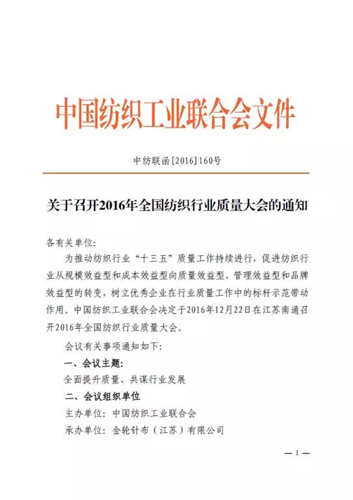 2016全紡質量大會系列報道(二) 本刊記者-徐長杰 隨著社會的發展,質量的內涵與外延也在不斷的充實與擴展。質量的提升,是一場永無止境的競賽。因責任和使命而出發,在追求卓越的跑道上不斷超越與被超越。如今,我國紡織工業正在逐漸告別以規模優勢、成本優勢的發展模式,走上了一條以質取勝的升級之路。在不斷的探索和實踐中逐步明確了以樹立、貫徹、夯實“大質量”作為我國紡織工業健康、穩定、可持續發展的基礎和長期戰略目標。 2016年,是“十三五”的開局之年,是中國制造業大轉型的一年,同時也是我國紡織工業按照國家部署,進一步提升質量、增加品種和塑造品牌的重要一年。全國紡織行業質量大會作為總結行業質量工作的年度重要工作會議,被看作是行業質量工作的閱兵場。如今,大會召開在即,《紡織服裝周刊》記者專訪了長期負責行業質量工作的中國紡織工業聯合會副會長孫淮濱,他從多方面闡述了紡織行業質量工作的重要性以及本次全國紡織行業質量大會將呈現的亮點。