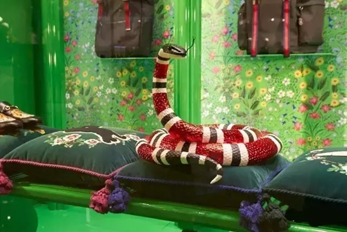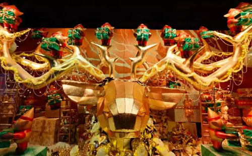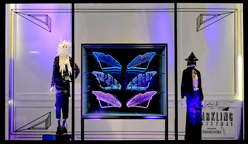 9北京老佛爺將人偶化身為“怪獸”造型,把櫥窗裝飾成為戲劇化的舞臺。本土折紙藝術家們制作的怪獸頭套、巨型怪獸利爪、眼睛和牙齒造型新潮時尚又充滿了魔幻趣味,海量施華洛世奇水晶和炫目變幻的多彩LED燈光點綴其間。整個櫥窗充分展示了華麗、氛圍感和新奇的創作理念。