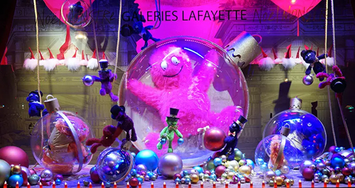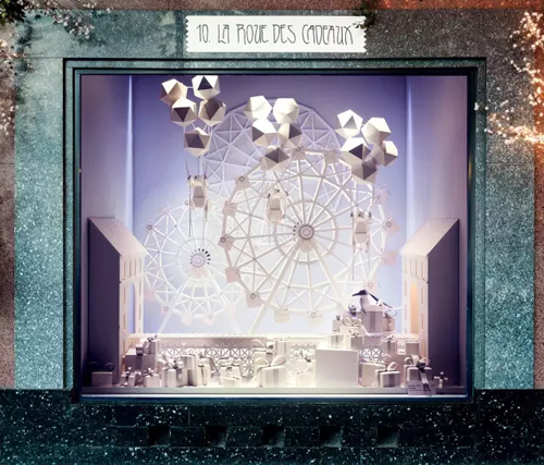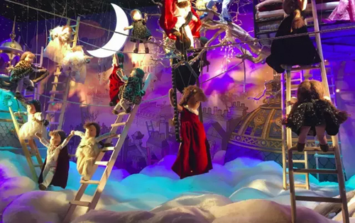 La roue des cadeaux 禮物摩天輪 巴黎春天 “群魔亂舞” 再來看看靠近盧浮宮博物館的巴黎春天百貨,不光是購物狂們的天堂,更是一座歷史建筑。今年圣誕櫥窗的主題靈感來源于兩個孩子的夢境。