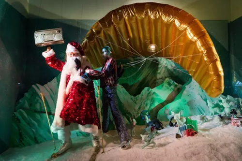 倫敦 倫敦的櫥窗設計更加凸顯鬼馬風格,宏大的敘事場面與戲劇化的情景結合彰顯獨特的儀式感。童話與現代的碰撞顯得十分有趣。 Selfridges "圣誕老人的 Disco" 這家于 1909 年創立的百年老店今年將經過盛裝打扮的圣誕老人提前請到牛津街,開展了雪地上的時尚派對。