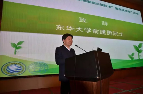 俞建勇在致辭中對發展化纖綠色纖維制造技術提出了幾點建議,包括綠色纖維制造的應用、開發循環利用纖維、研發節能減排新技術、注重標準修訂和清潔生產評價體系建設、加強基礎研究工作、加大宣傳力度,讓社會了解綠色纖維等。