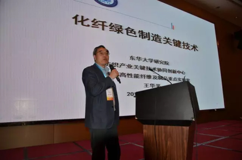 東華大學研究院副院長王華平從國內外紡織業發展趨勢談到了化纖行業綠色纖維制造關鍵技術,并對建設綠色纖維制造體系、發展化纖再生循環經濟進行了展望。