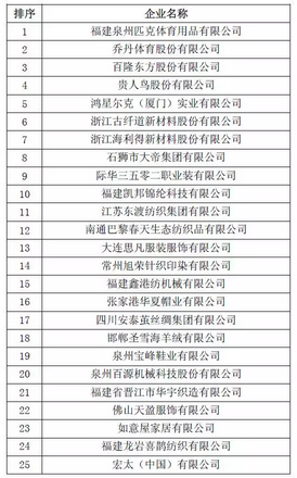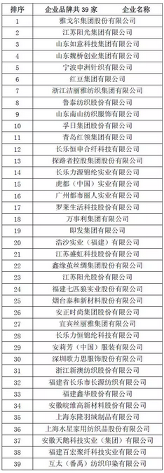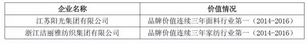 2016年中國紡織服裝自主創(chuàng)新品牌價值評價企業(yè)(25家)