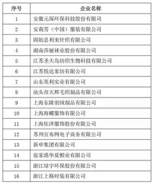 中國紡織工業(yè)聯(lián)合會 “紡織行業(yè)品牌培育管理體系有效運行企業(yè)”名單(2016年) (按首字母順序排列)
