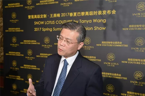 雪蓮集團總經理陳笛語先生接受媒體采訪。 首次海外嘗試“即看即買”全新模式 本次發布會上,高級定制專業委員會不僅力推“雪蓮高級定制by Tanya Wang2017春夏系列”入駐巴黎高級定制旗艦店LES SUITES,還攜手巴黎天使基金會PARIS TOUT P’TITS及其亞洲形象大使鏈接歐洲精英文化圈層資源。 到場賓客手持訂貨單,近距離觀賞、下單,實現了現場“即看即買”的全新定制商業模式。