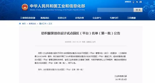 按照《工業和信息化部關于印發<紡織服裝創意設計試點示范園區(平臺)管理辦法(試行)>的通知》(工信部消費[2016]396號)要求,國家工信部組織開展了2016年度紡織服裝創意設計試點示范園區(平臺)遴選工作。