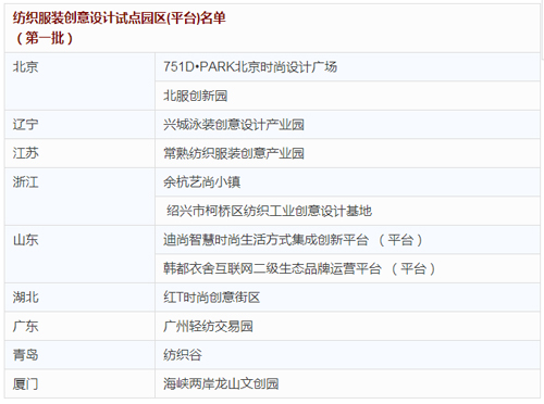 工信部公布首批紡織服裝創意設計試點園區(平臺)名單