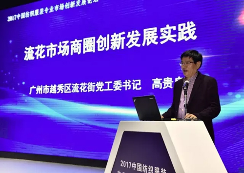 流花市場(chǎng)商圈創(chuàng)新發(fā)展實(shí)踐 廣州市越秀區(qū)流花街黨工委書記 高貴良 流花時(shí)尚、流花風(fēng)尚成為中國的名片、廣州的名片、流花的名片,都有賴于根植于此的企業(yè)家和白馬、紅棉這樣優(yōu)秀的專業(yè)平臺(tái)所付出的不懈努力,在持續(xù)的創(chuàng)新和發(fā)展歷程中,我們可以總結(jié)以下三方面的經(jīng)驗(yàn)與體會(huì): 第一,作為地區(qū),要認(rèn)真領(lǐng)會(huì)供給側(cè)結(jié)構(gòu)性改革思想,為時(shí)尚產(chǎn)業(yè)獻(xiàn)計(jì)獻(xiàn)策。如果供給側(cè)結(jié)構(gòu)性改革不能緊密的跟上,未來我們的經(jīng)濟(jì)發(fā)展就一定會(huì)受限,一定會(huì)受阻,要求大家要建立互聯(lián)網(wǎng)思維,特別是互聯(lián)網(wǎng)+和移動(dòng)互聯(lián)網(wǎng)的營銷思想,不斷減少和減輕企業(yè)負(fù)擔(dān)。 第二,認(rèn)真領(lǐng)會(huì)地區(qū)的資產(chǎn)性質(zhì)。流花地區(qū)是商業(yè)中心,是交通中心。流花地區(qū)每天的采購商一般在30萬,高峰期接近50萬。沒有這么大的承載量,白馬、紅棉等市場(chǎng)就沒有今天的興旺發(fā)展,龐大的采購商群體是珍貴的“財(cái)產(chǎn)”。地區(qū)黨委只有正確認(rèn)識(shí)到這份“資產(chǎn)”的價(jià)值,才會(huì)有良好的思想管理和促進(jìn)產(chǎn)業(yè)的發(fā)展。 第三,要不斷創(chuàng)新社會(huì)治理模式。社會(huì)治理跟時(shí)尚產(chǎn)業(yè)緊密相關(guān),流花地區(qū)應(yīng)繼續(xù)推進(jìn)社會(huì)治理新模式,將為民服務(wù)、為商服務(wù)、為社會(huì)服務(wù)的整體核心統(tǒng)一,團(tuán)結(jié)好廣大商家,在社會(huì)治理模式上大膽創(chuàng)新,實(shí)現(xiàn)社會(huì)治理的全面創(chuàng)新和升級(jí)。 主旨演講